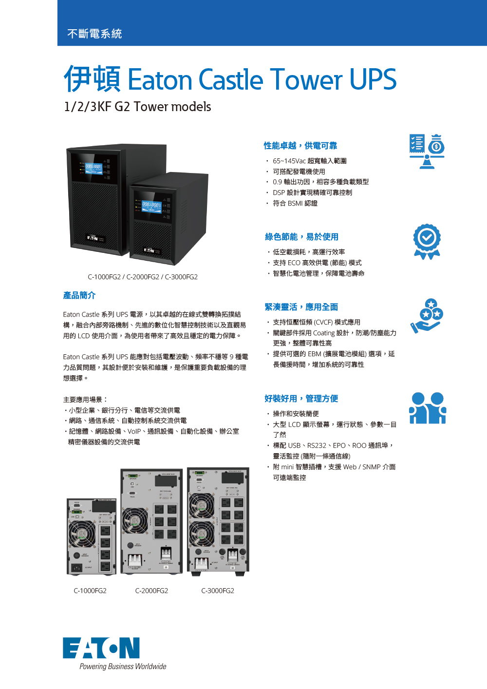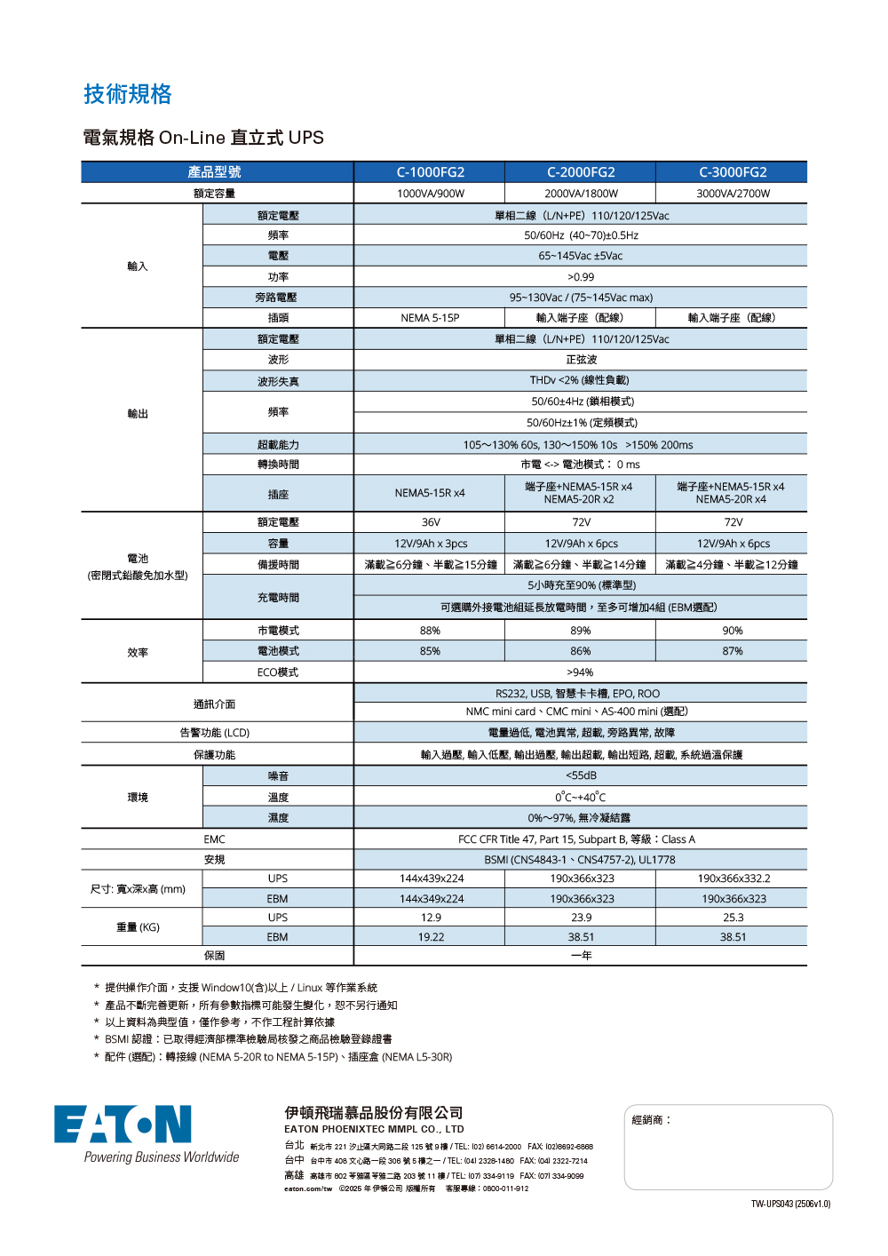 伊頓EATON【C3000FG2】在線式不斷電系統