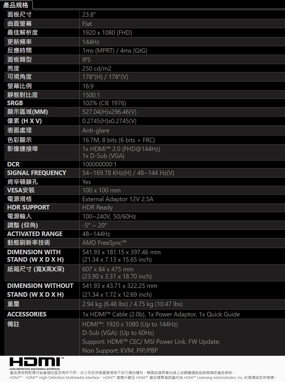 ※以上規格資料若有任何錯誤,以原廠所公佈資料為準。