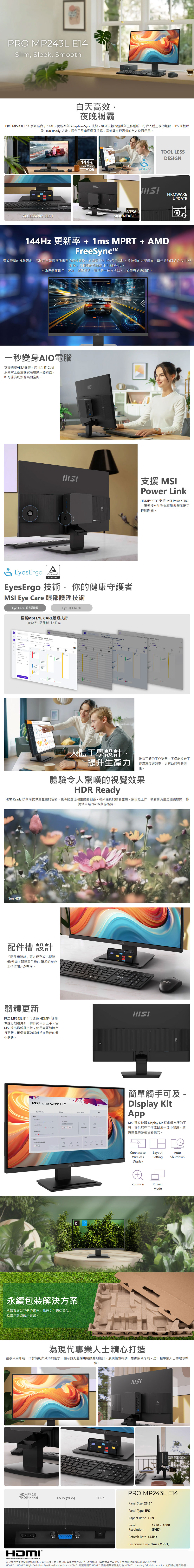 微星 MSI PRO MP243L E14 (23.8 吋顯示器)