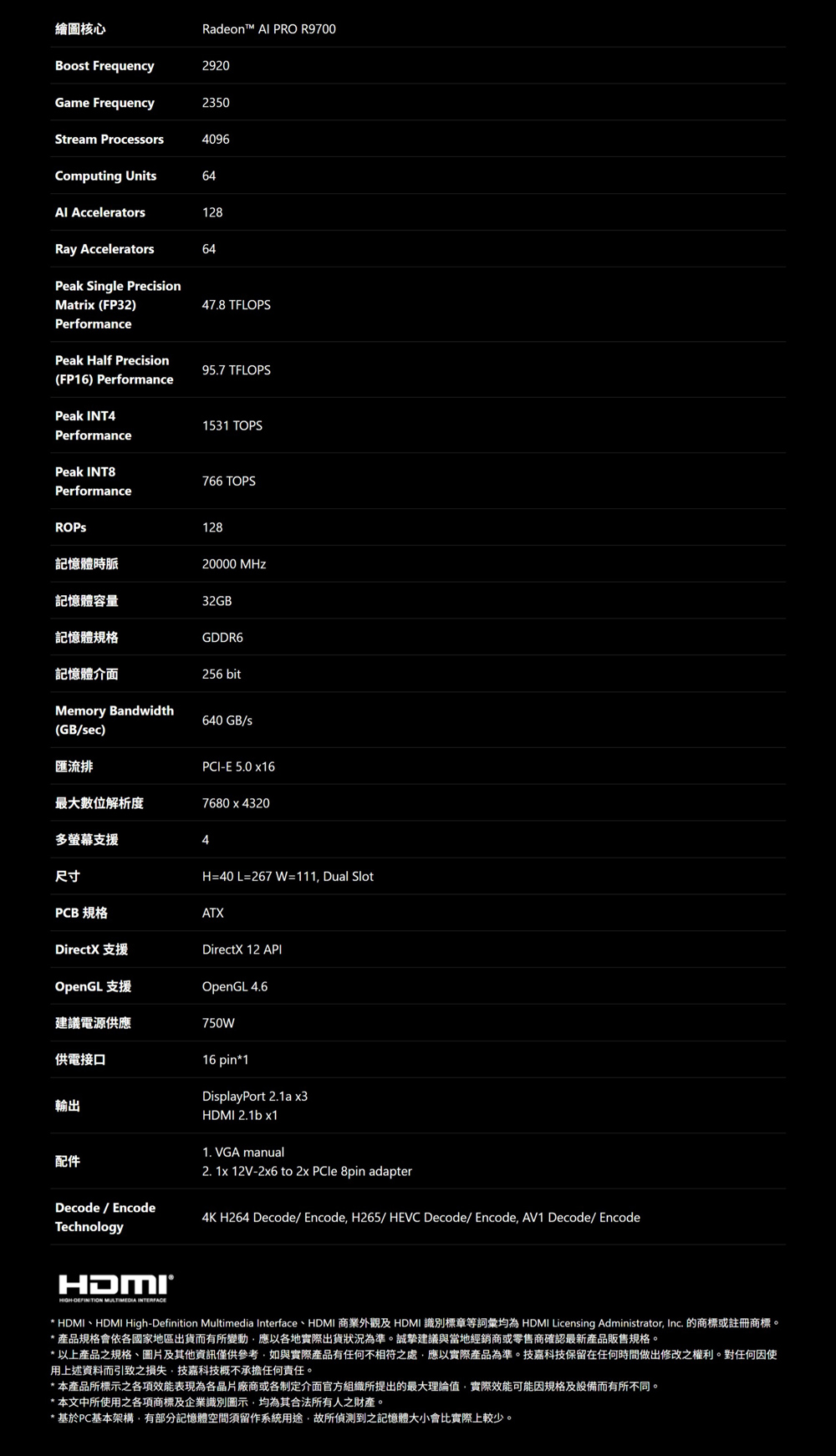 ● 採用 Radeon™ AI PRO R9700 運算晶片