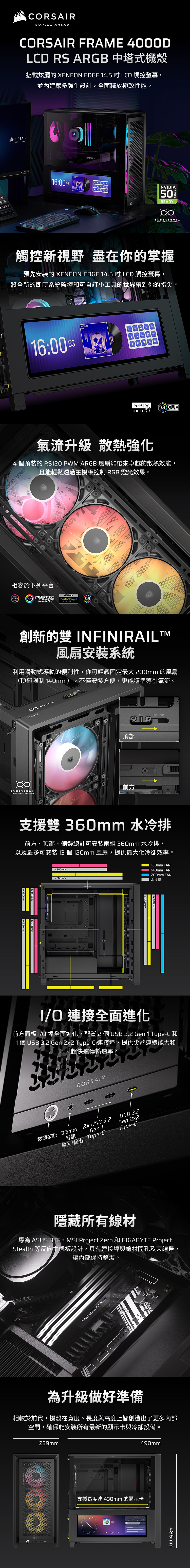 海盜船Corsair Frame 4000D機殼含XENEON EDGE LCD螢幕【附RS140炫光風扇*4】