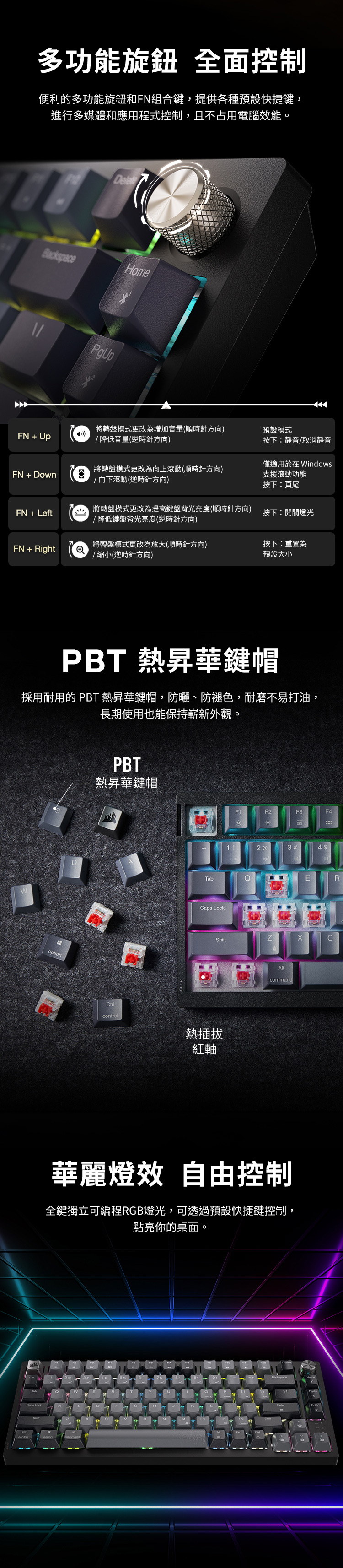 海盜船Corsair K65 PLUS WIRELESS 75% RGB三模無線機械鍵盤【MLX線性紅軸|灰・英文】