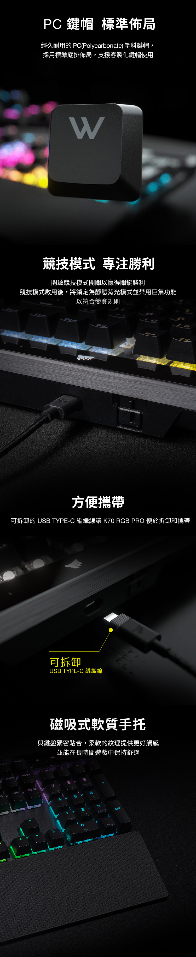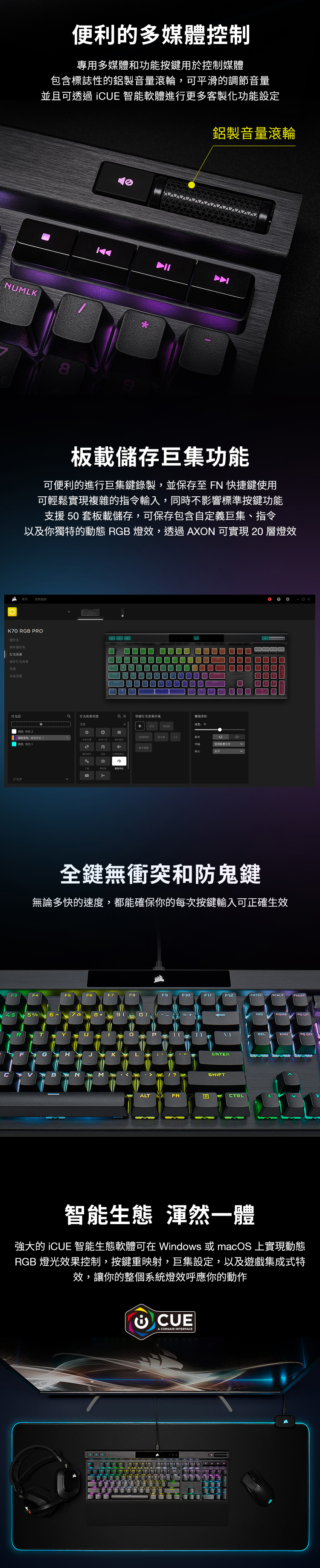 海盜船Corsair K70 PRO RGB 機械鍵盤【紅軸|黑・中文】