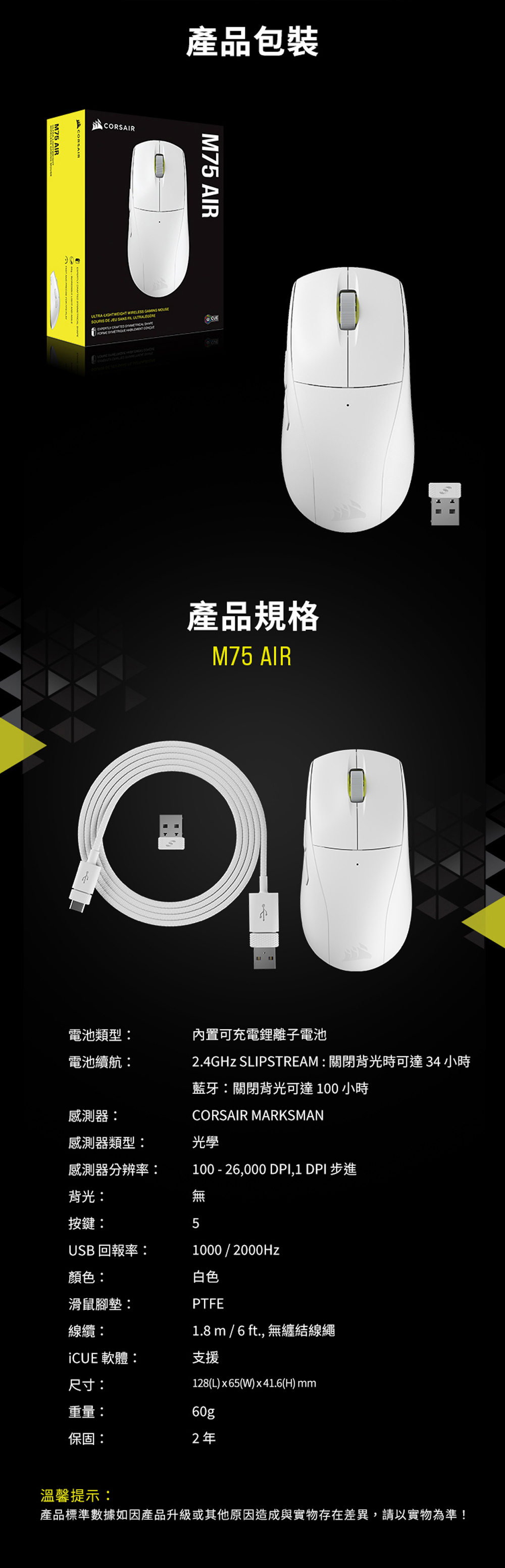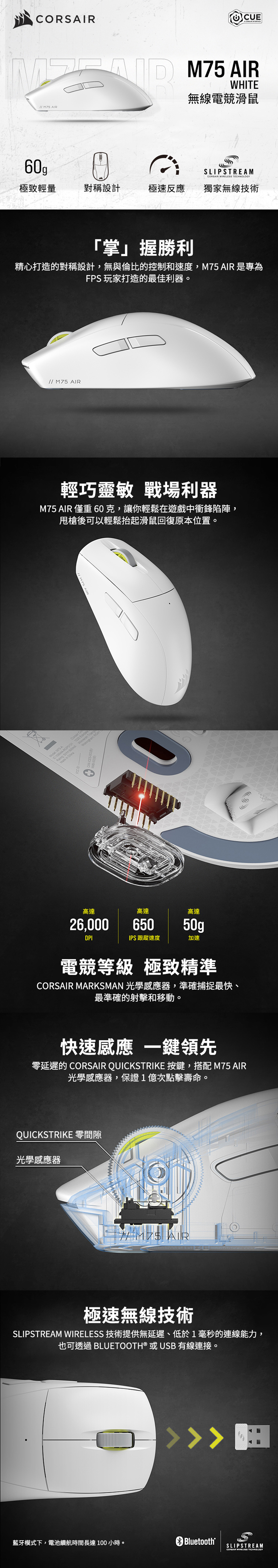 •僅重60g 極致輕量,輕巧靈敏 •專為FPS玩家精心打造對稱設計 •光學感應器,快速反應一鍵領先 •採用無線技術,低於1毫秒連線 •藍牙模式電池續航長達100小時