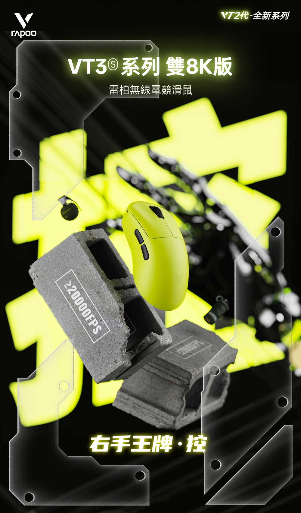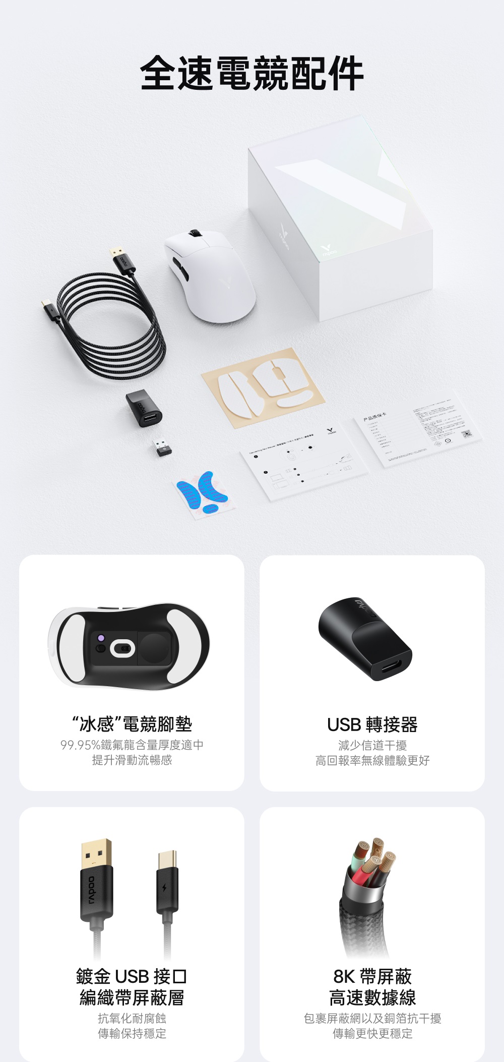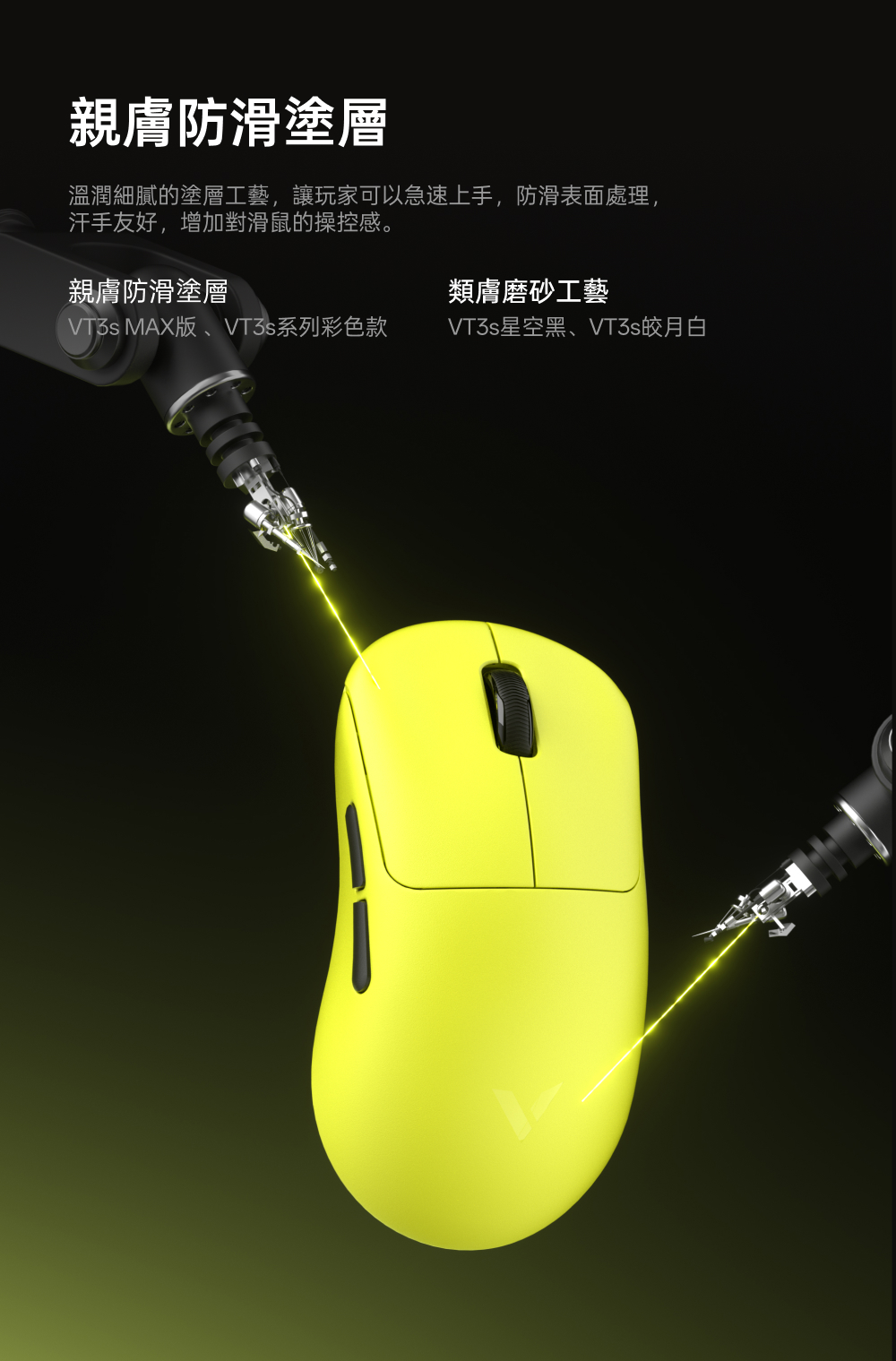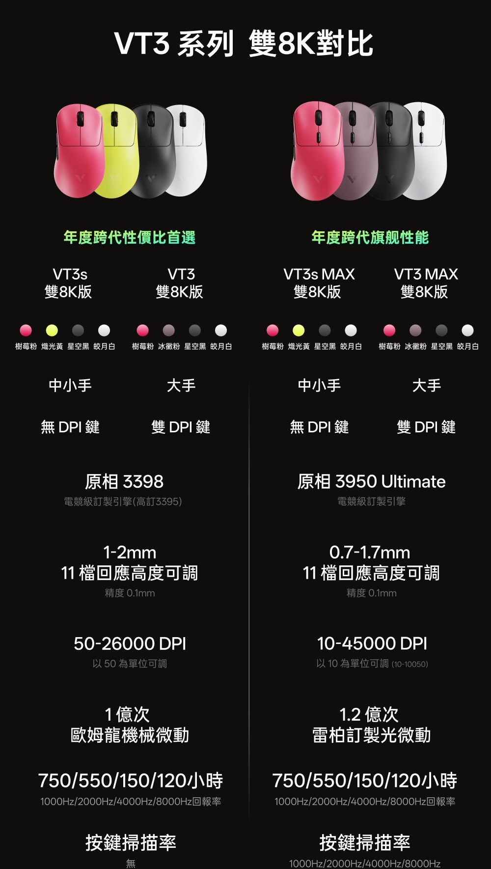 雷柏Rapoo VT3S 輕量雙模雙8K人體工學電競滑鼠,四色