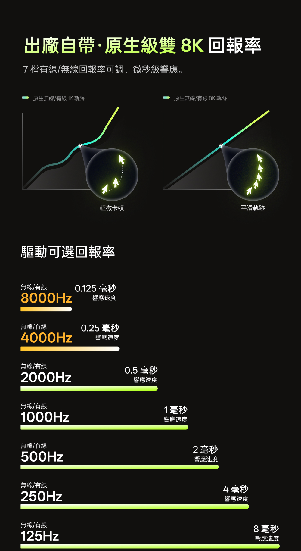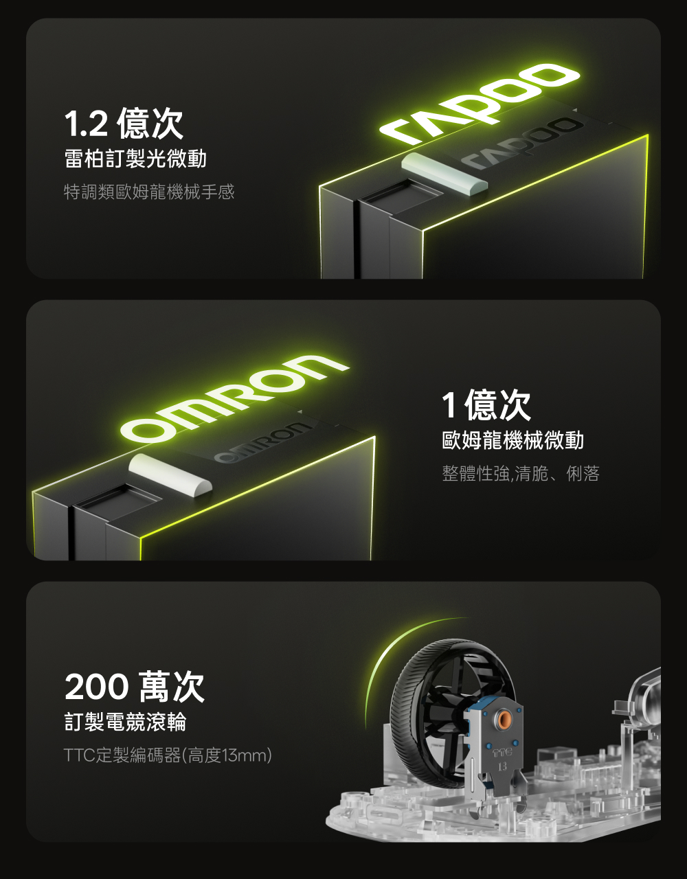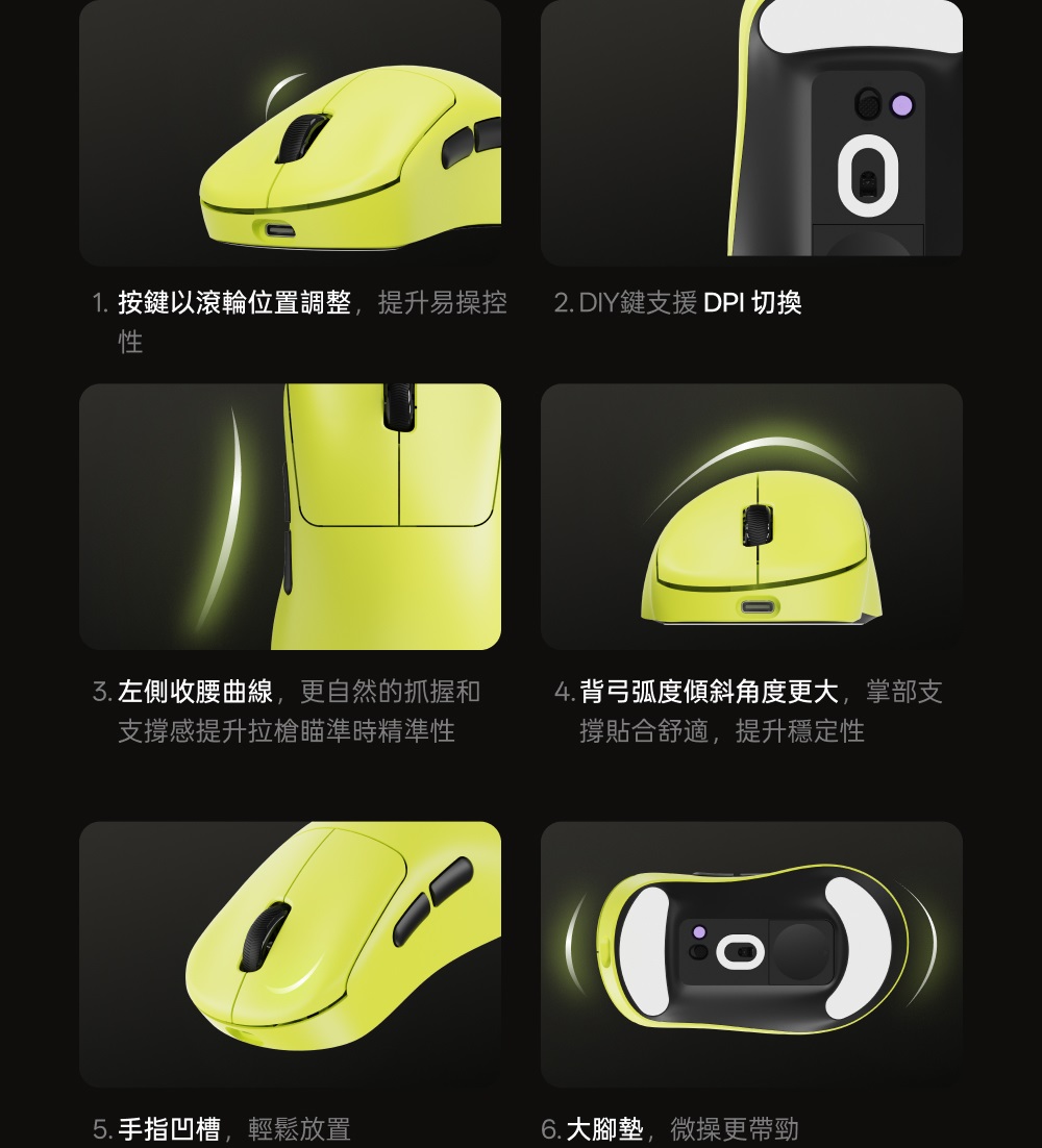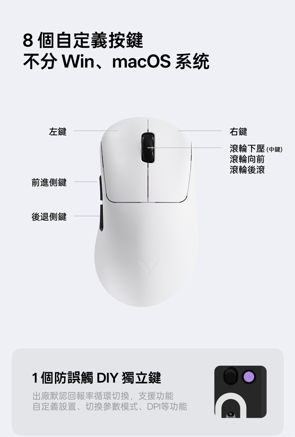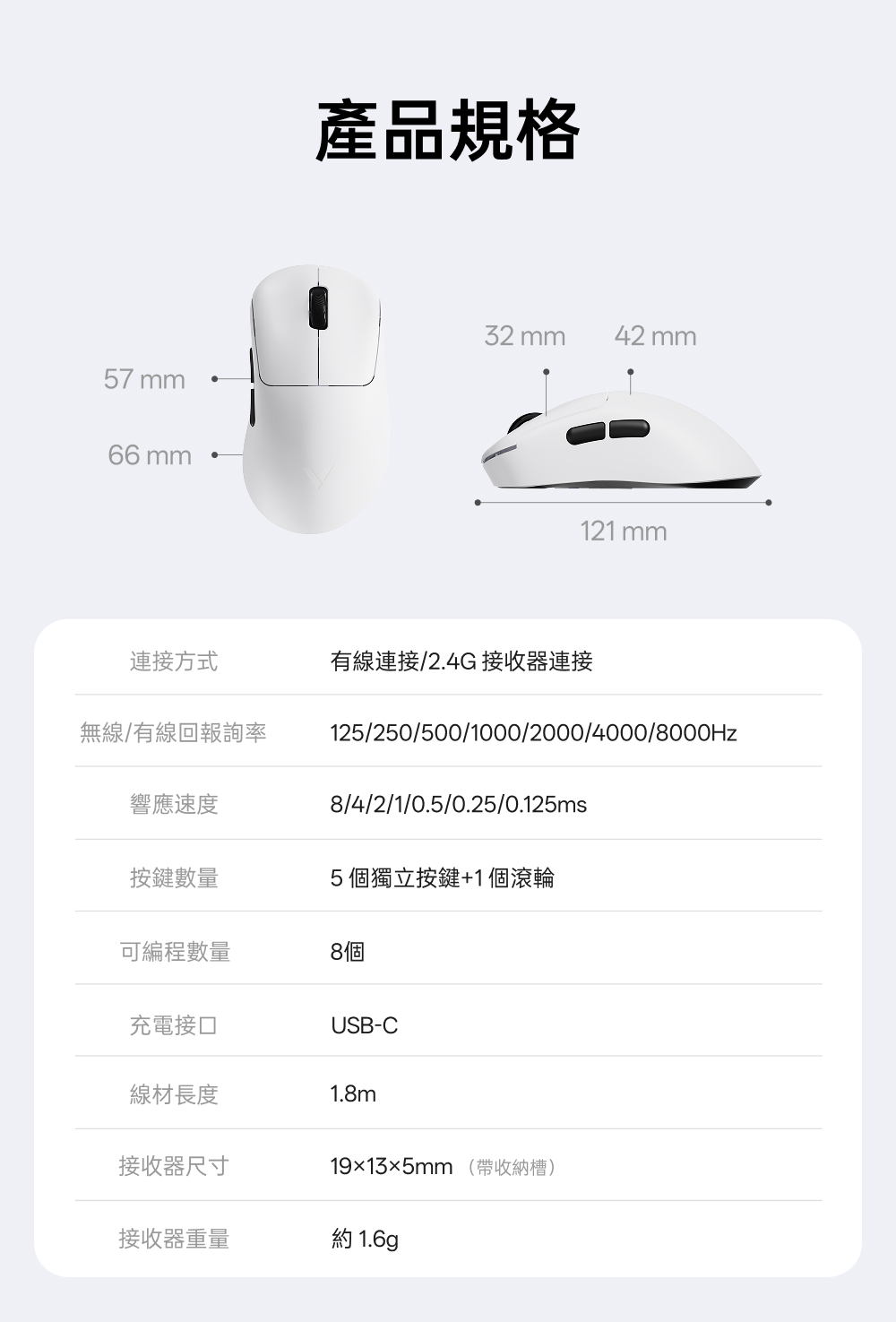 雷柏Rapoo VT3S 輕量雙模雙8K人體工學電競滑鼠,四色