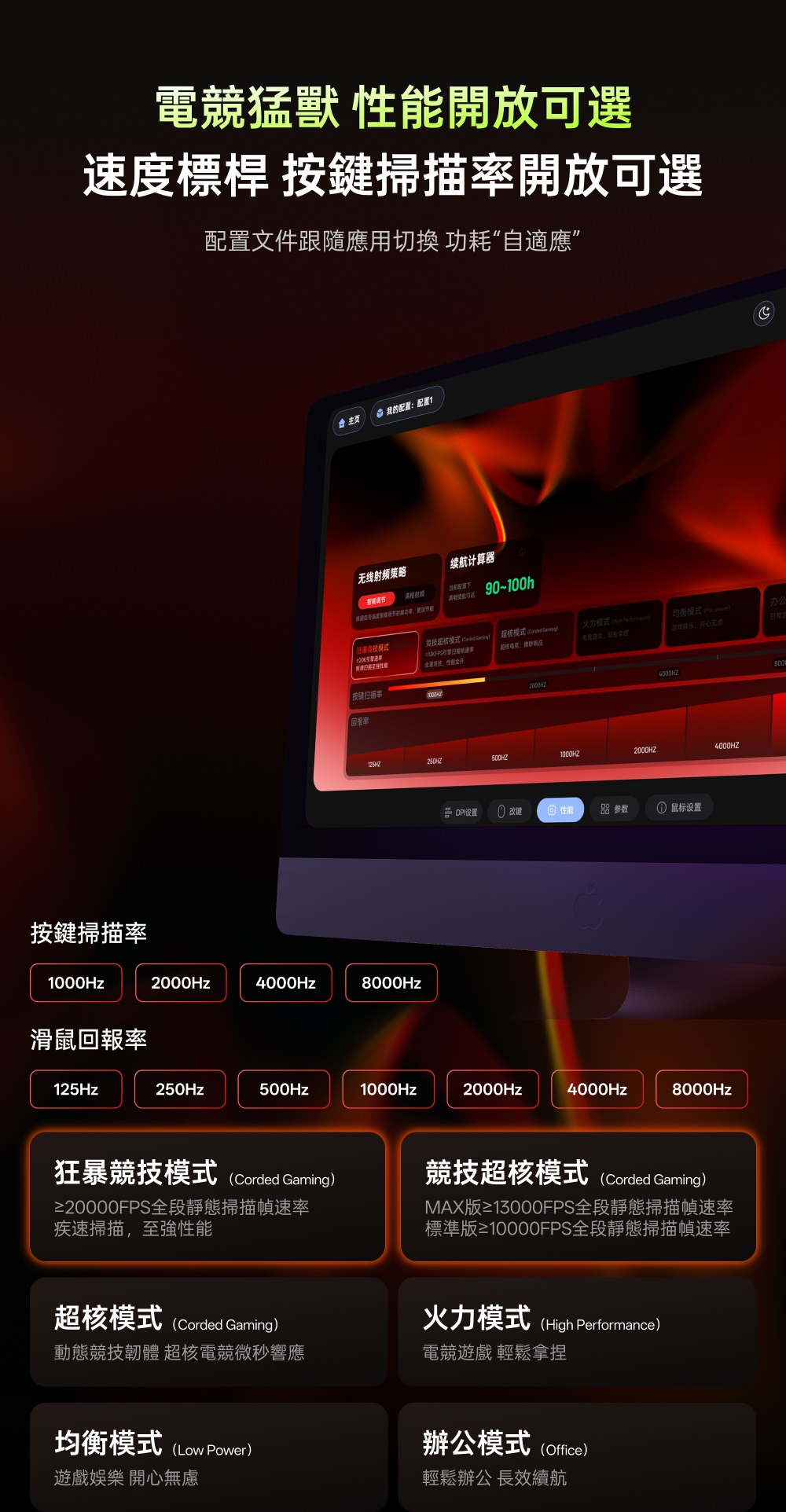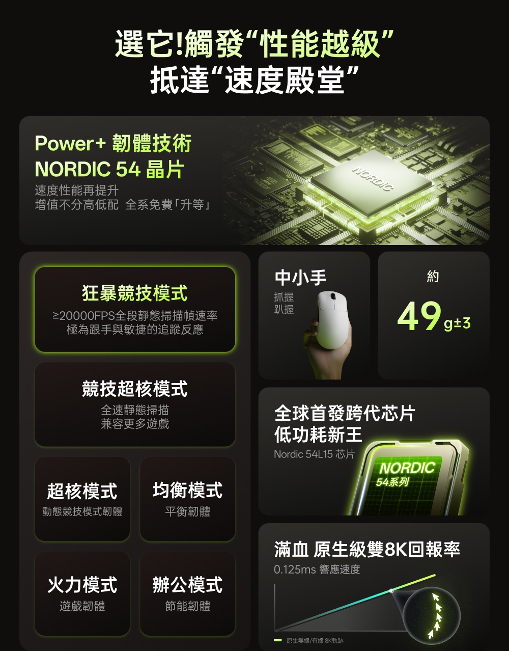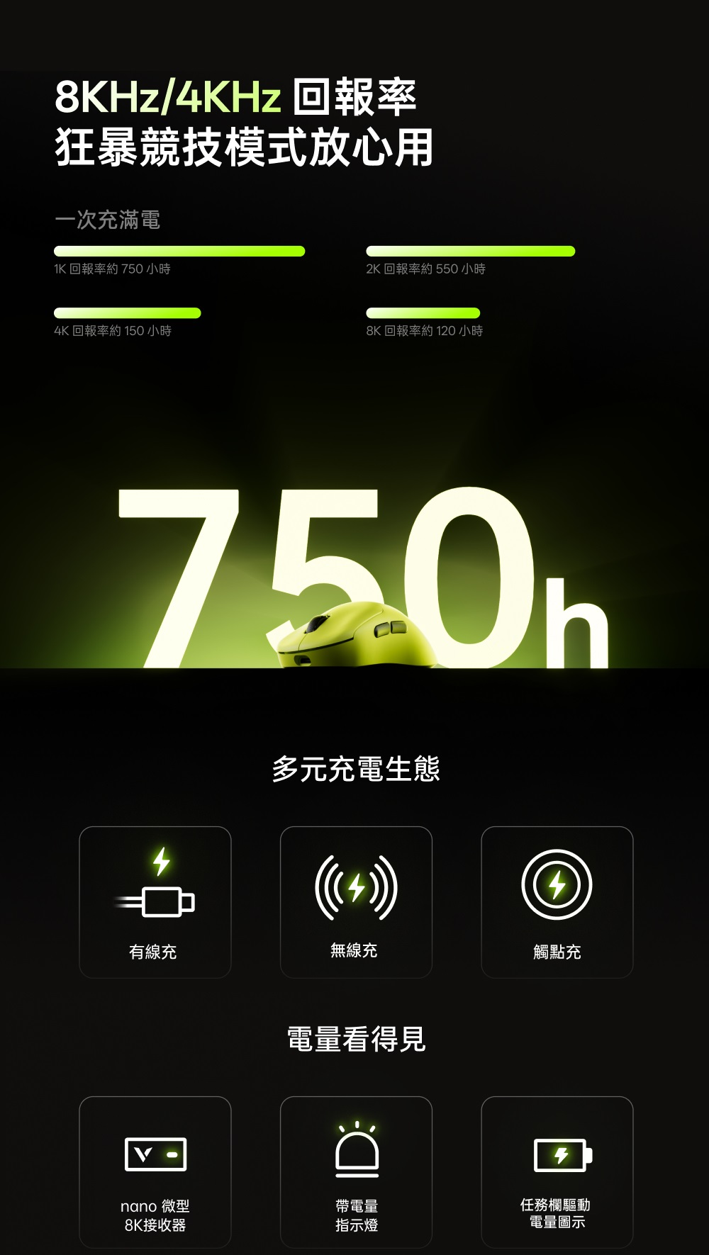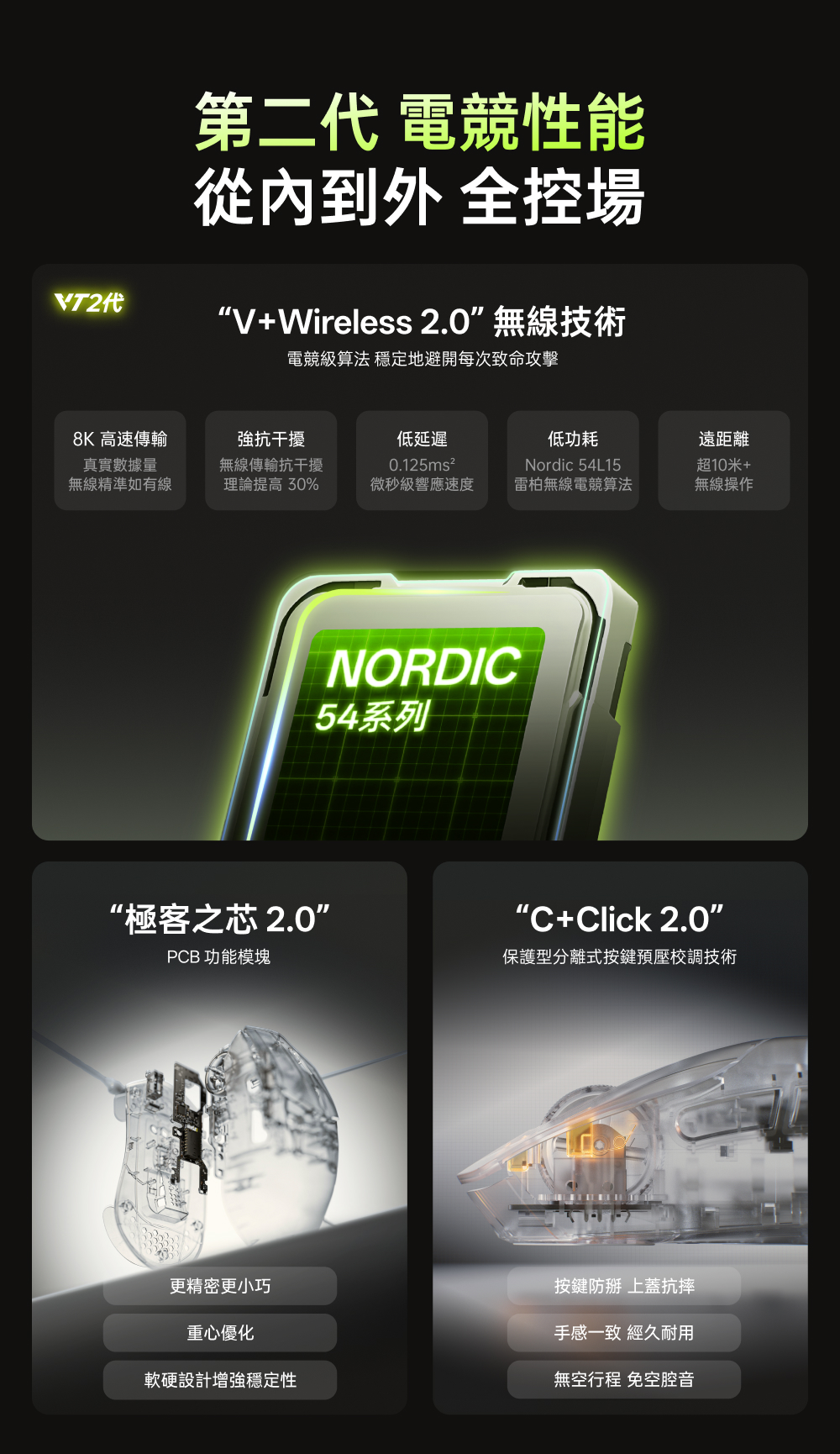 雷柏Rapoo VT3S 輕量雙模雙8K人體工學電競滑鼠,四色