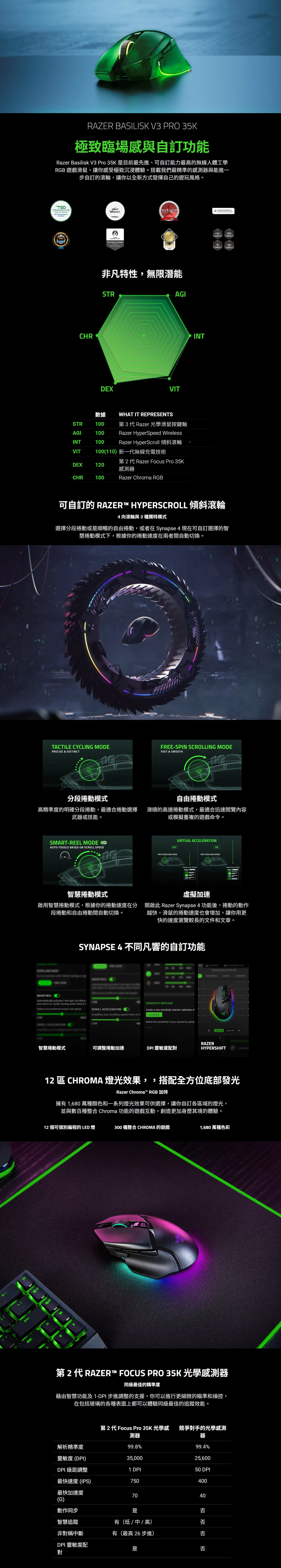 雷蛇Razer 巴塞利斯蛇 V3 Pro 35K 無線滑鼠Phantom Green Edition