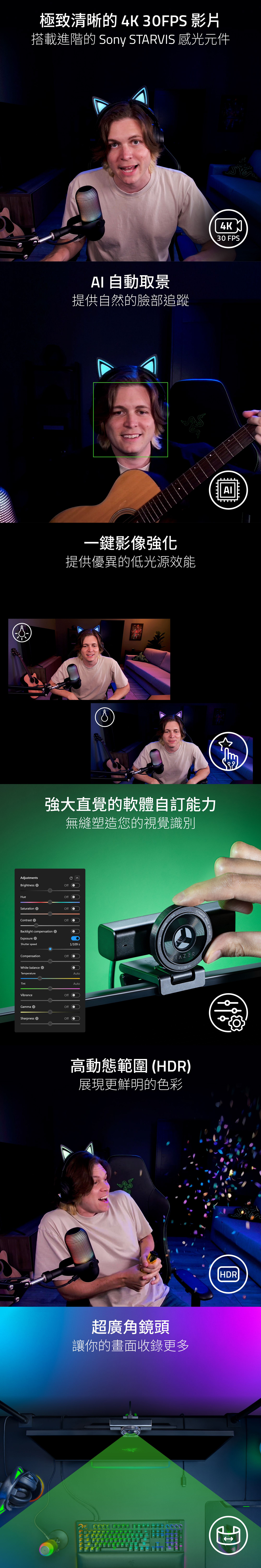 雷蛇Razer Kiyo V2-4K(黑)網路攝影機