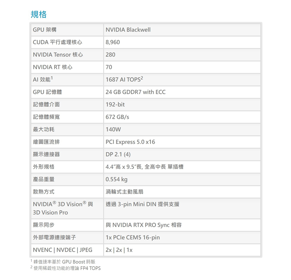 ● 24GB GDDR7 錯誤修正代碼 (ECC)記憶體