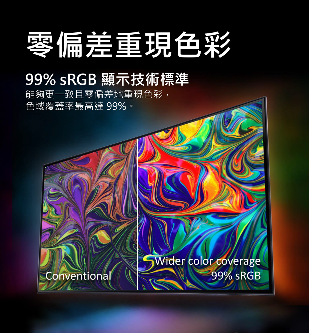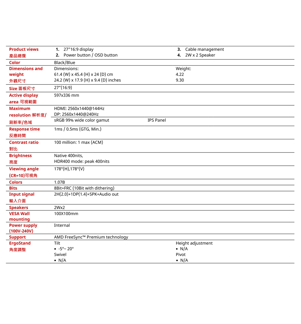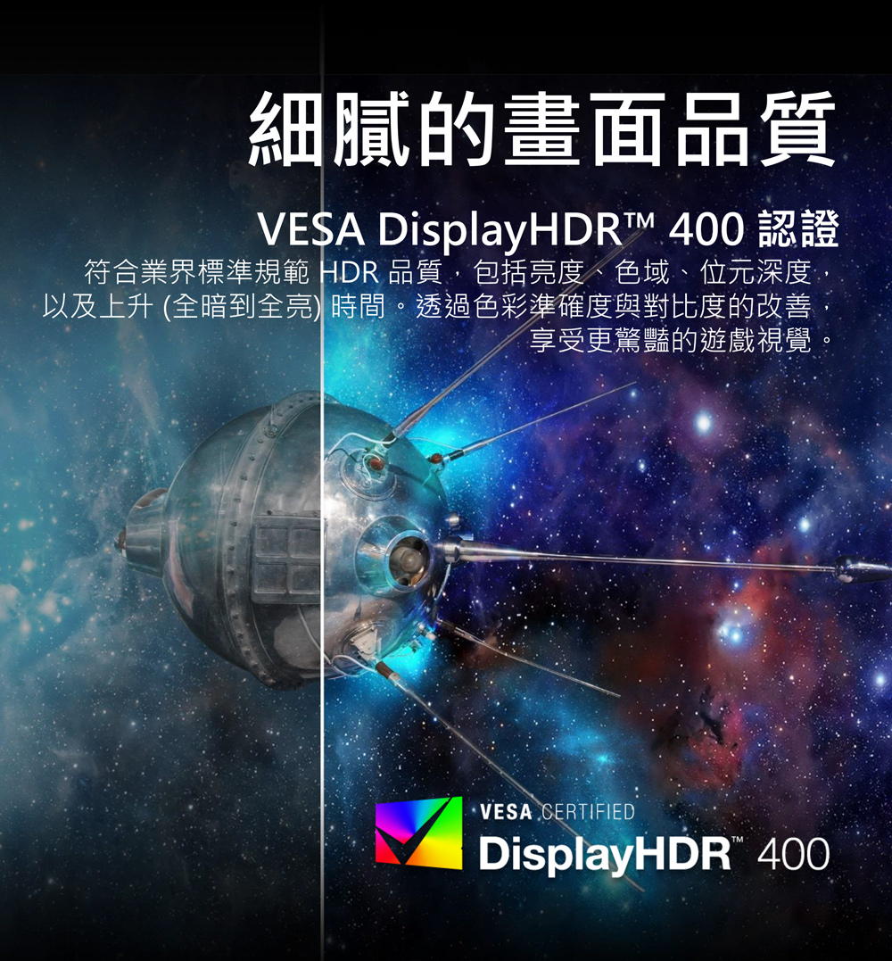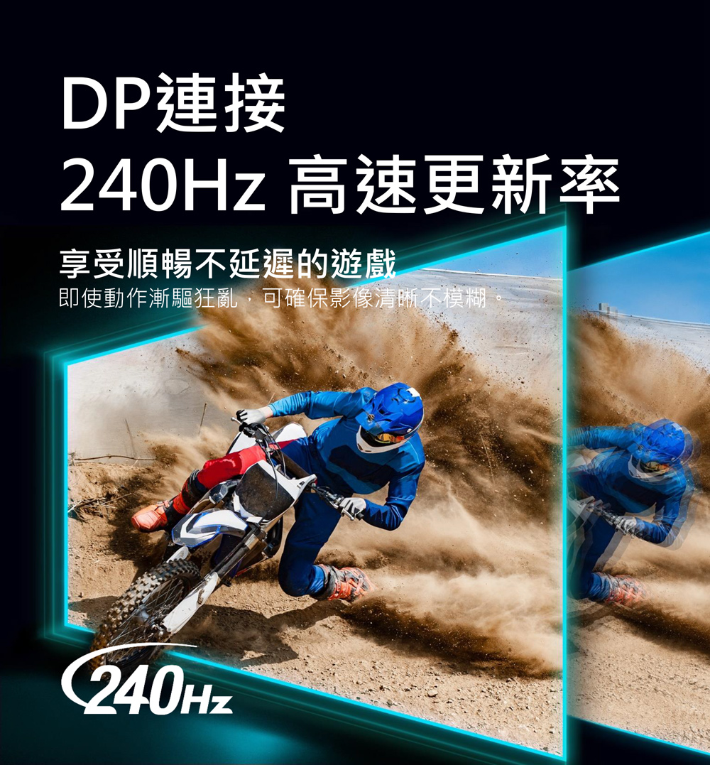 2K 240Hz 更新率、0.5ms反應時間、支援HDR 400