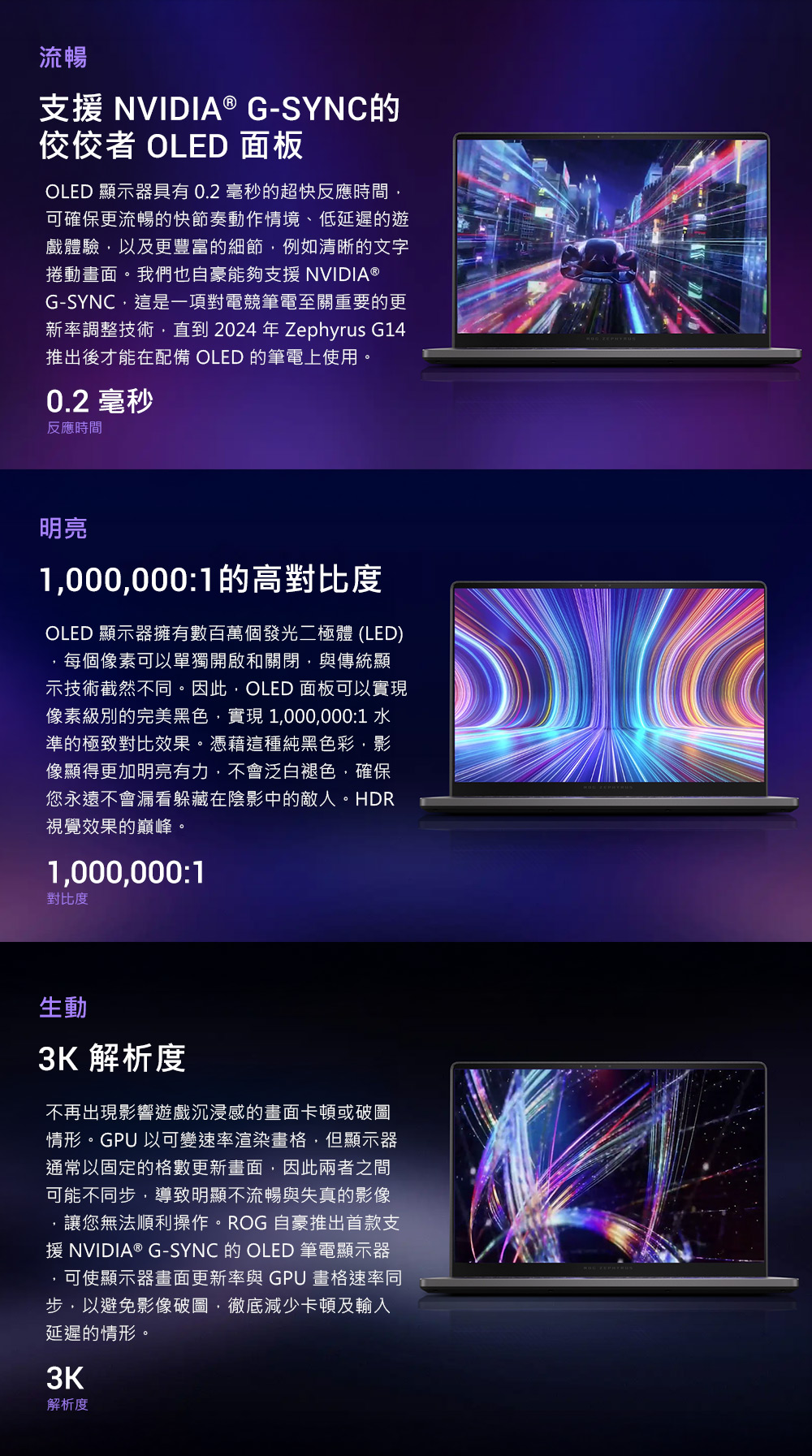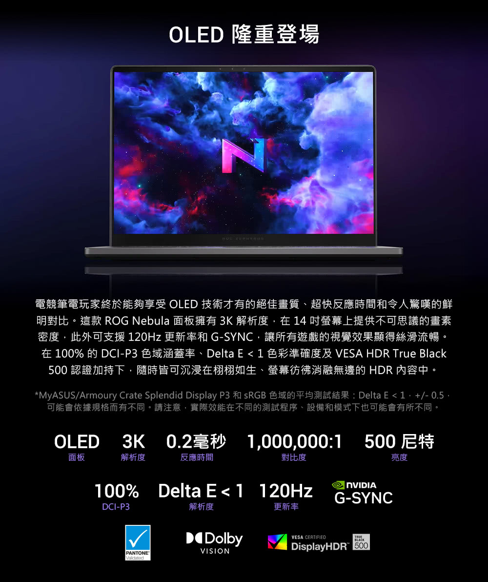 14吋 3K (2880 x 1800) OLED 16:10 aspect ratio, 500nits, 120Hz, OLED, Glossy display