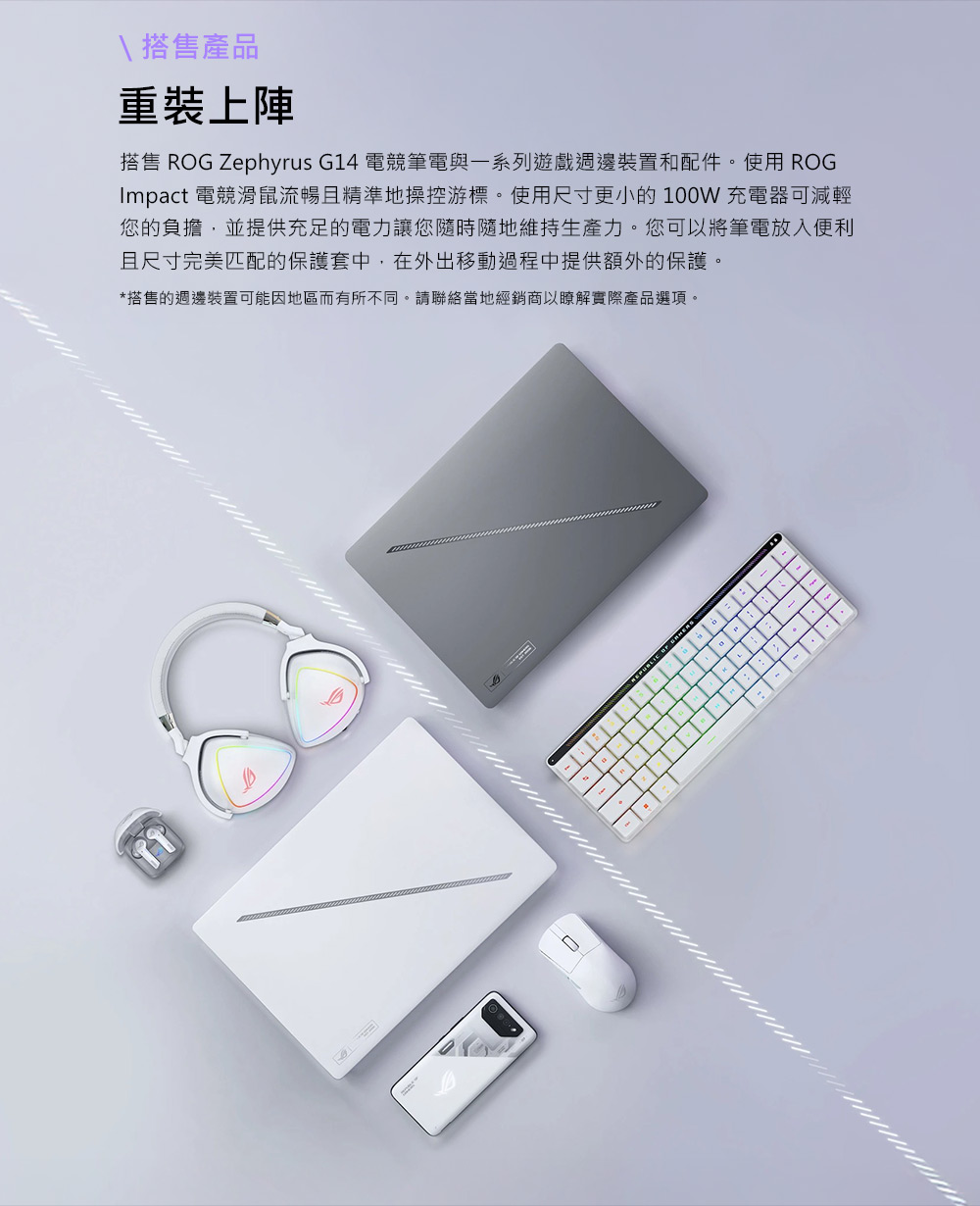 附G14 潮流保護袋、附ROG Impact電競滑鼠