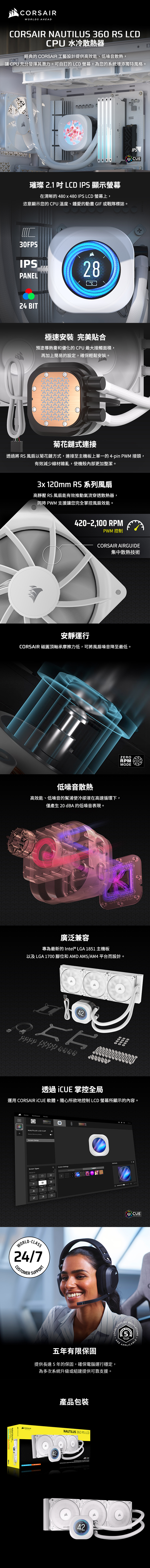 海盜船CORSAIR NAUTILUS 360 ARGB CPU水冷散熱器,二色可選