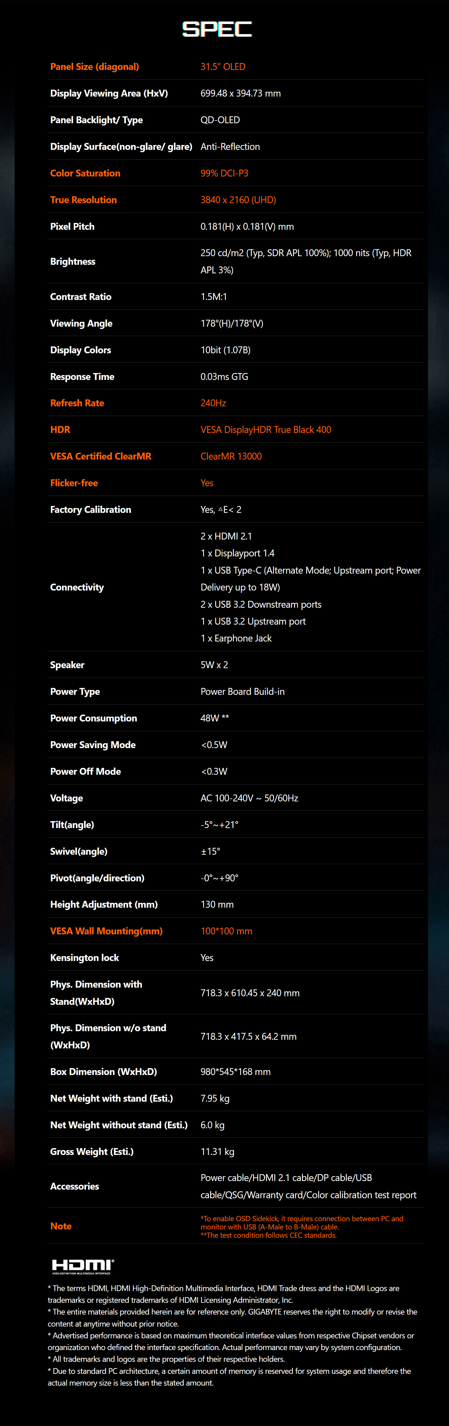 ● VESA DisplayHDR True Black 400
