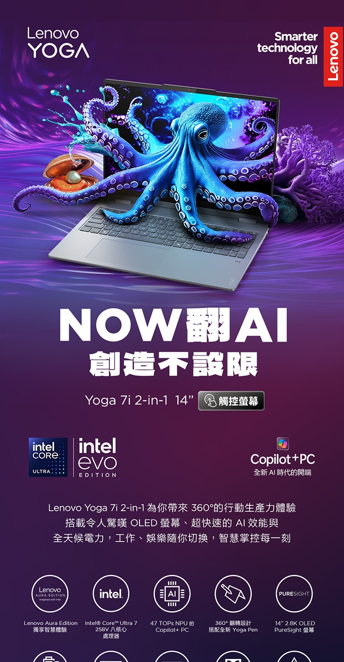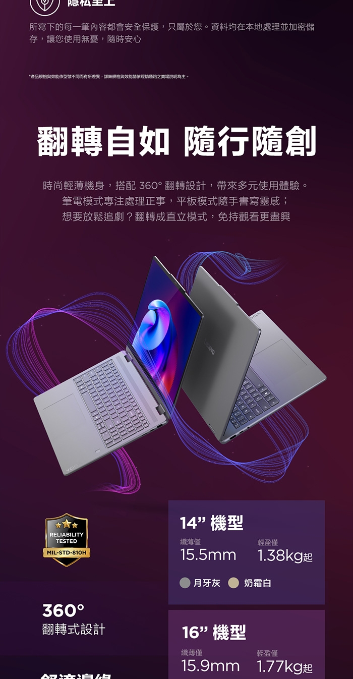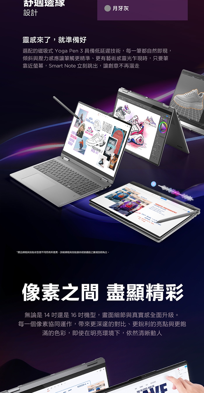 14吋 2.8K WQXGA+ (2880x1800) OLED 1100nits (peak) / 500nits (typical) Glossy / Anti-fingerprint, 100% DCI-P3, 120Hz, Dolby Vision, TUV Low Blue Light, DisplayHDR True Black 1000, Glass, Touch