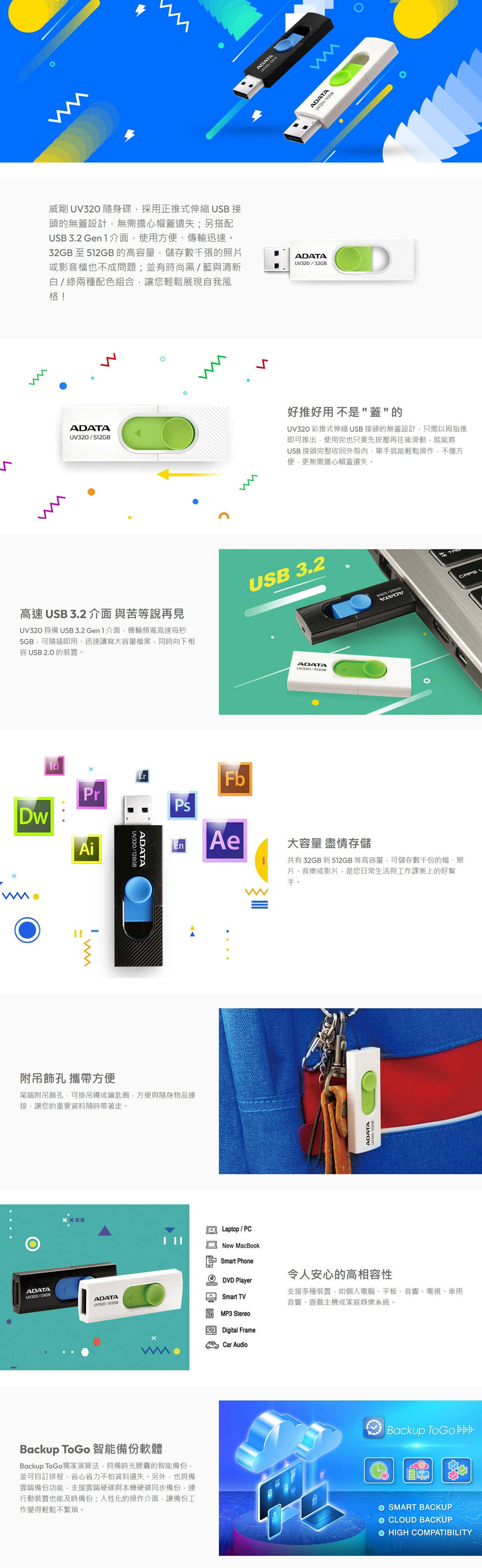 威剛 UV320/64GB USB3.2隨身碟,二色可選